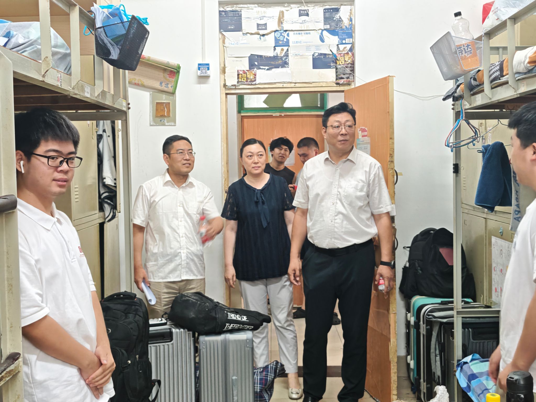 关怀,切实做好毕业生文明离校工作,6月20日,我院党委书记李超,院长谢群、党委副书记、副院长朱小燕,深入2025届毕业生宿舍进行走访慰问,送别毕业生。