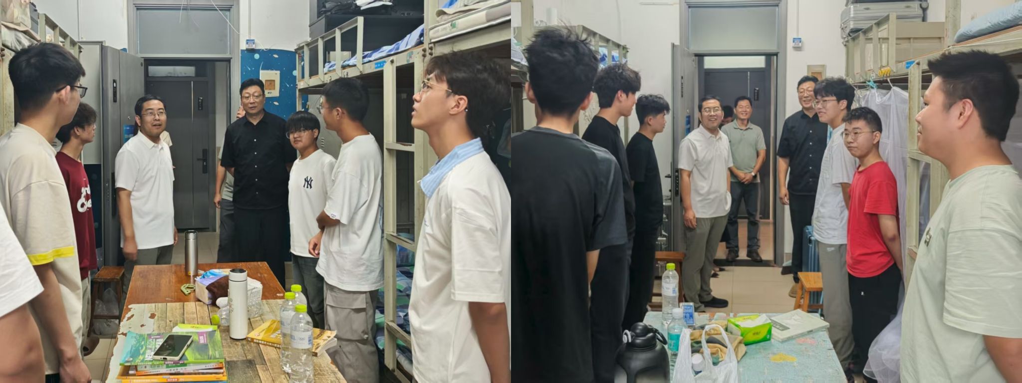 党委书记李超,院长谢群,党委副书记、副院长李健慧,副院长王嘉斌及全体辅导员深入新生宿舍开展走访慰问活动,实地了解新生的入学适应情况,并围绕校园生活、学业规划等方面与同学们亲切交流、暖心指导。