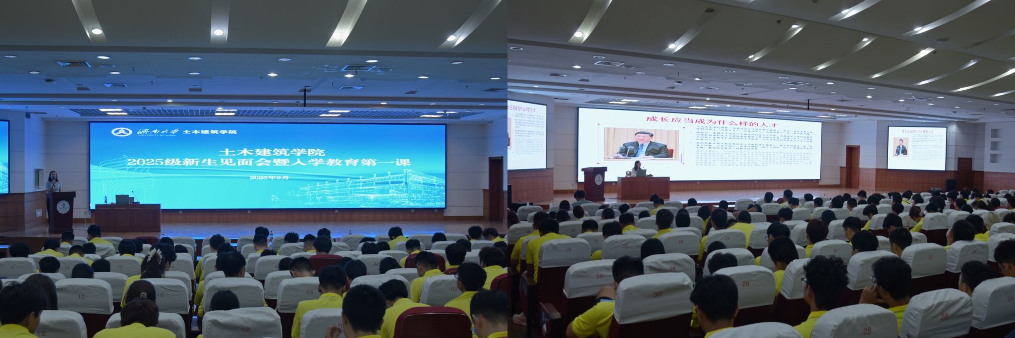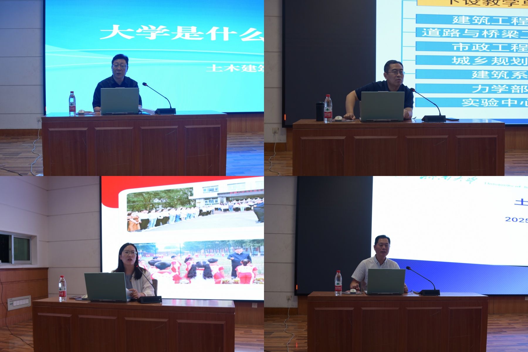 的发展历程、学科优势与重要成就。他结合多位优秀校友在行业内深耕实干、成就卓越的真实事例,为新生们勾勒出奋斗的方向与路径。他寄语同学们要在不断认知自我、觉醒自我的过程中锤炼专业能力,始终坚守初心、脚踏实地,以实干成就土建学子的梦想。