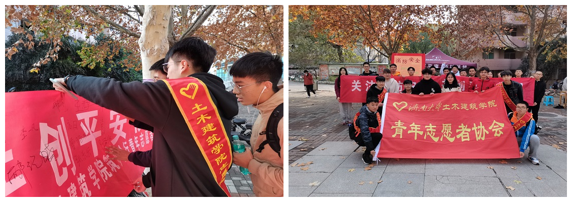 青年志愿者协会向参加此次活动的同学们发放了精美的奖品,活动获得了参与学生的一致好评。最后,志愿者们在横幅上共同签字合影留念。