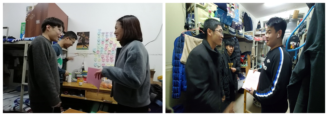 党委副书记、副院长朱小燕及辅导员老师到宿舍走访慰问考研学子。