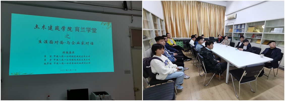 于八教205教室举办“育兰学堂”之“生涯面对面-与企业家对话”交流座谈会。本次座谈会邀请到中建八局一公司绿色建筑发展公司的李京、李宇和中建八局一公司基础设施建设公司的施彦佐等澳门娱乐城