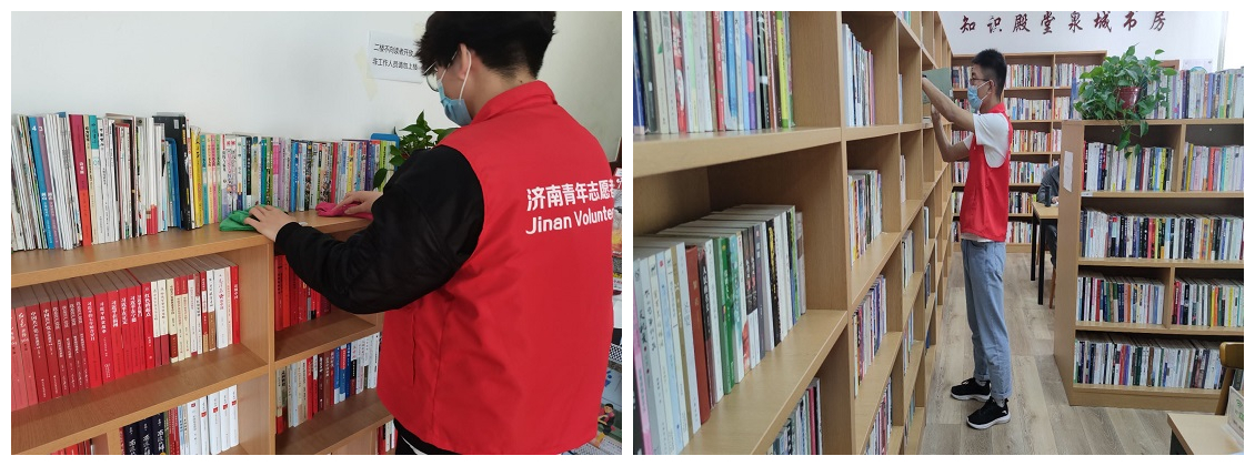 筑梦砼行青年志愿者协会的四名志愿者来到泉城书房参与志愿服务活动。