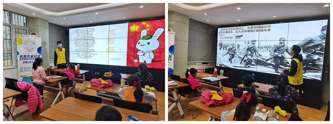 “红色薪火”志愿团的青年志愿者们以“铭记红色历史,传承红色基因”为主题,以革命先烈英雄事迹为导线,让青少年们了解爱国故事,理解爱国含义,激励社区的青少年们热爱祖国,明确自己所肩负的中华复兴的历史使命。活动过程中青少年们纷纷表示要从现在开始,不忘初心,砥砺前行,继承先烈意志,加倍努力学习。活动最后,志愿者带领在场的青少年们一齐大声朗读艾青的《我爱这土地》,将全场氛围推向高潮,让“爱国”的种子深深扎根在青少年心中。