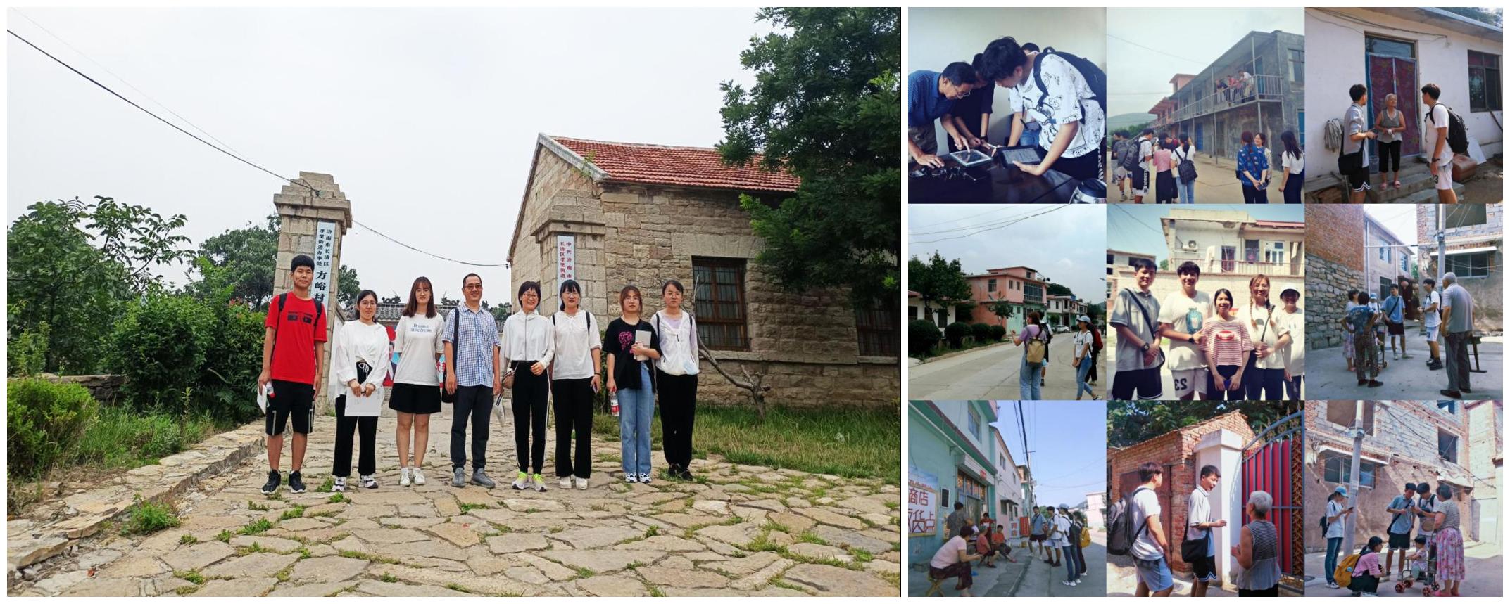 “投石问崮”实践团队与“乡村勘测行动队”通过实地采访与调研,了解不同村落有关人口组成、产业比例、基础设施现状、乡村发展目标的相关情况;通过对村民的走访和询问,了解当地居民对家乡发展的实际需求和愿景。根据村落原有现状,结合专业所学,进行深入规划设计,形成调研报告和设计方案。