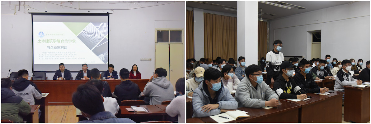 于第八教学楼223教室举行生涯面对面系列活动-“育兰学堂•与企业家对话”,邀请中建八局第一建设有限公司装饰分公司综合办公室(党群工作部)主任、团总支书记左准,市场客户部部门经理、2010级土木专业校友王方勇,综合办公室(党群工作部副)副主任、2013级土木专业校友冯彦。活动由澳门娱乐城