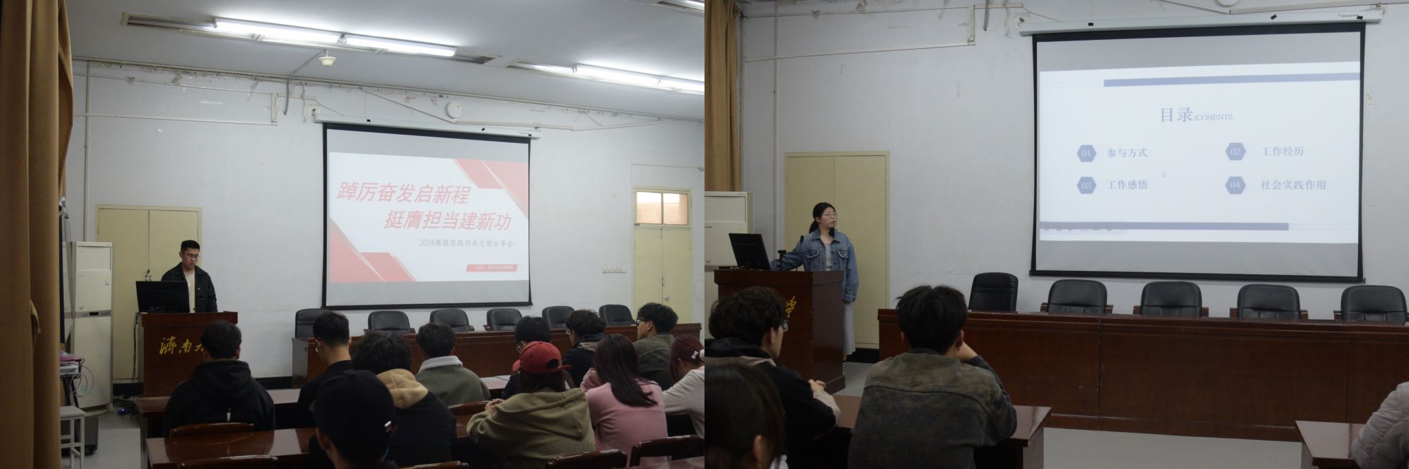 在八教223教室组织开展“实践归来话成长”2024年寒假社会实践分享会。