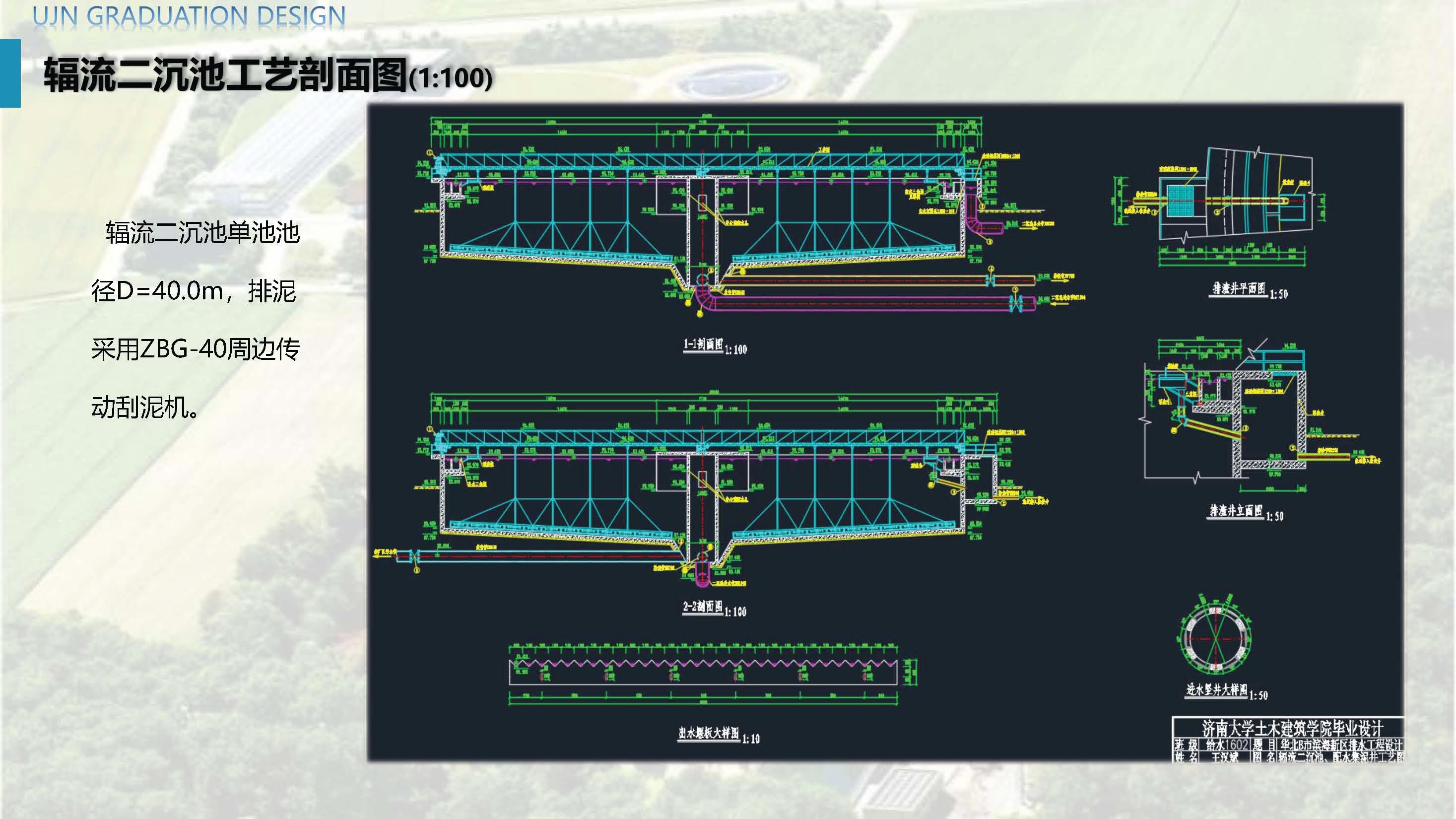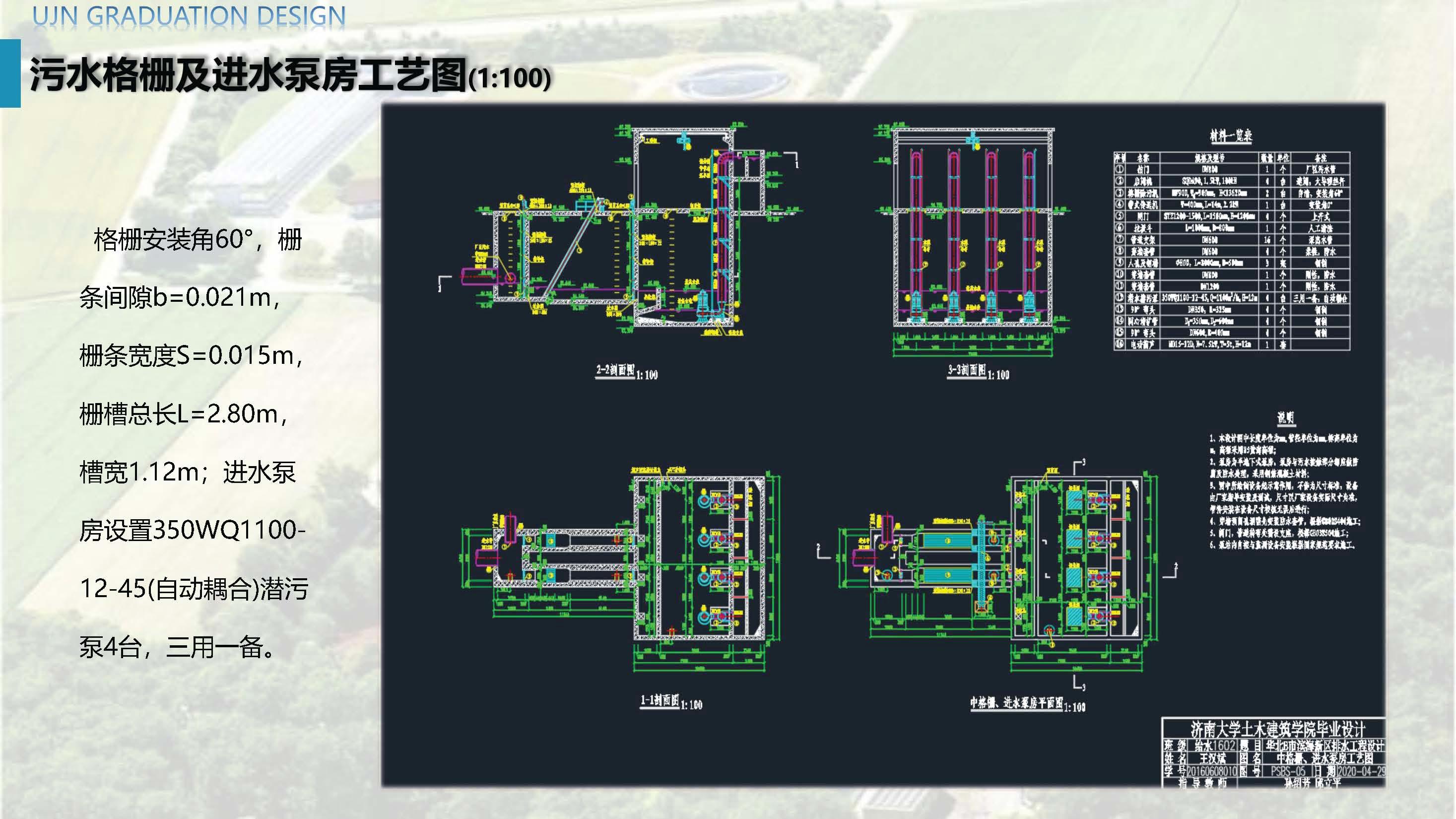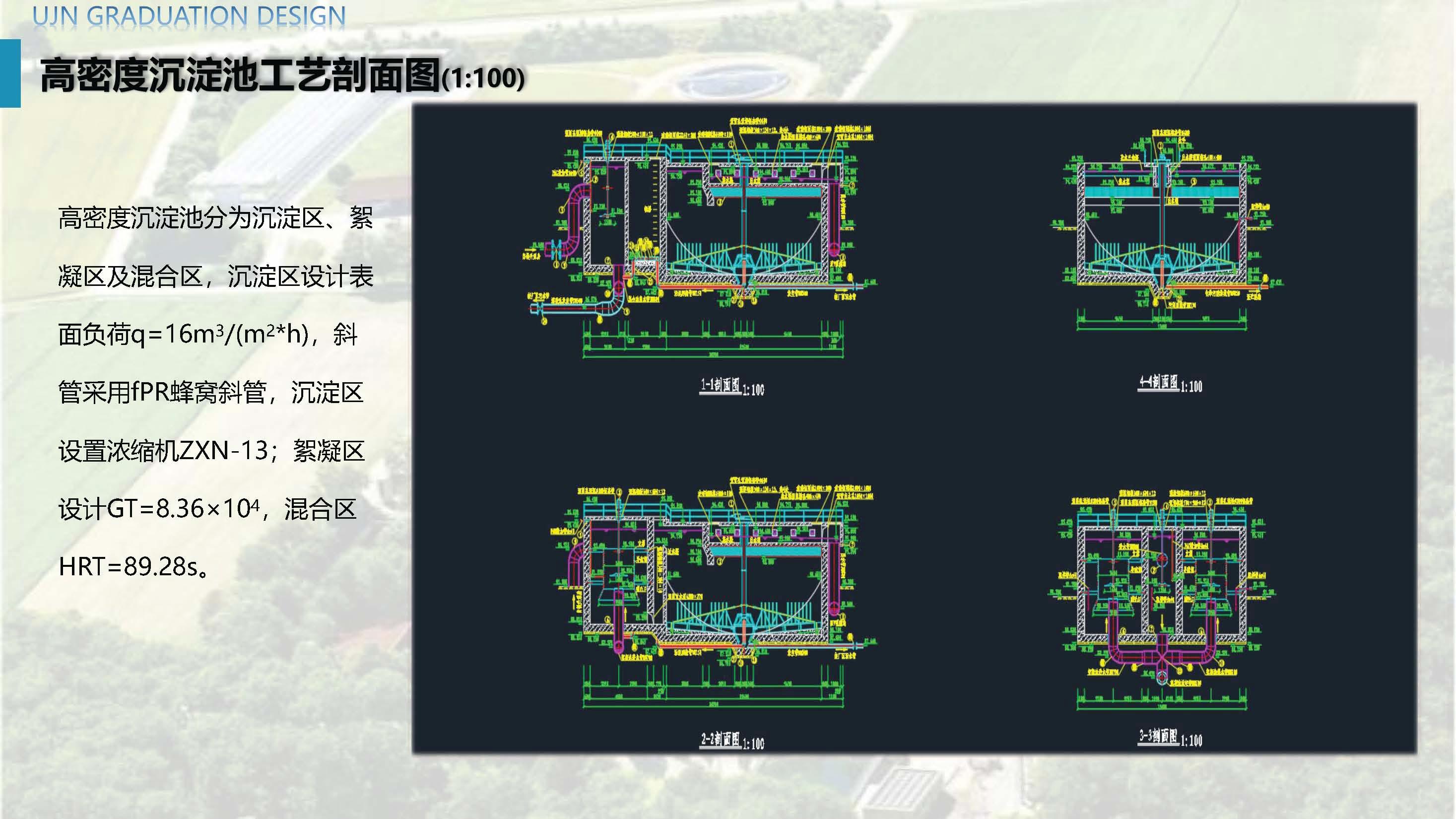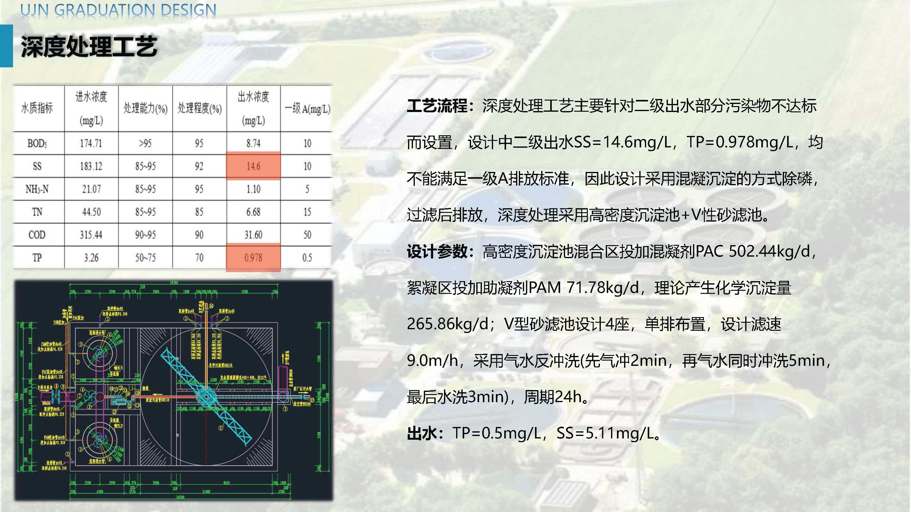 结论:管网设计中,城区距河流较远,直排式不利于雨水快速排除,且管段长,埋深较大,造价高,占用城市未规划用地较多,因此雨污水均采用截留式布置方式。污水厂设计水量7.18万立方米/天,属于中型污水厂,设计未设置初沉池,A2C-Carrousel氧化沟工艺设备少,运行维护简单,在经济中具有竞争力。氧化沟好氧区污泥龄设计15d,污泥有机质含量低,污泥规模较小,设计采用好氧消化能够进一步将剩余有机质、有毒有害物质降解,显著实现污泥的稳定、减量和无害化处理,中小型污水厂污泥采用好氧消化具备可行性,并且根据氧化沟内剩余污泥性质可适当降低好氧消化的规模及运行成本,因此设计好氧消化工艺具有一定的经济优势。